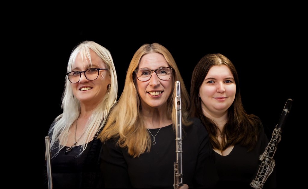 ‘The trio consists of Amanda Ayling playing flute and piccolo, Alice Thomas on clarinet and bass clarinet, and myself with flute and alto flute.’